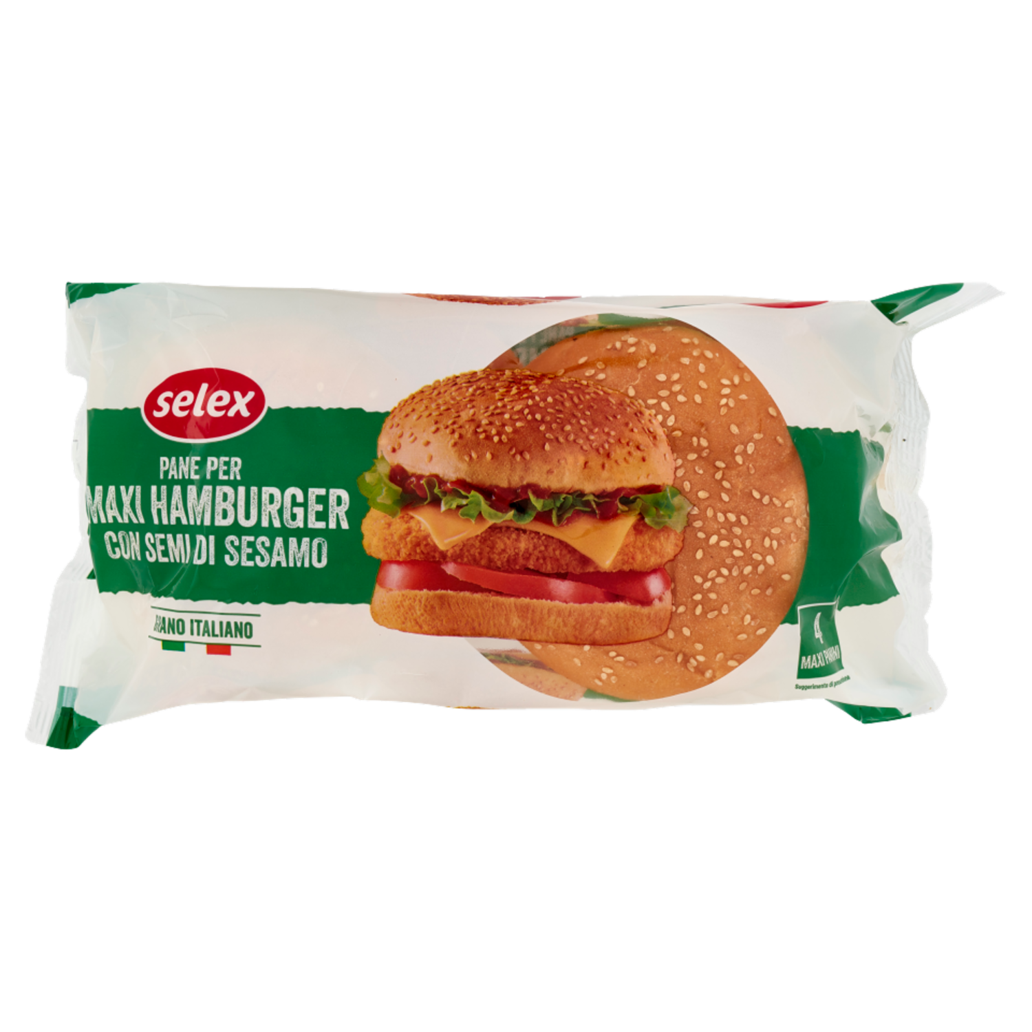 Selex Pane per Maxi Hamburger con Sesamo 4 pezzi 300 g