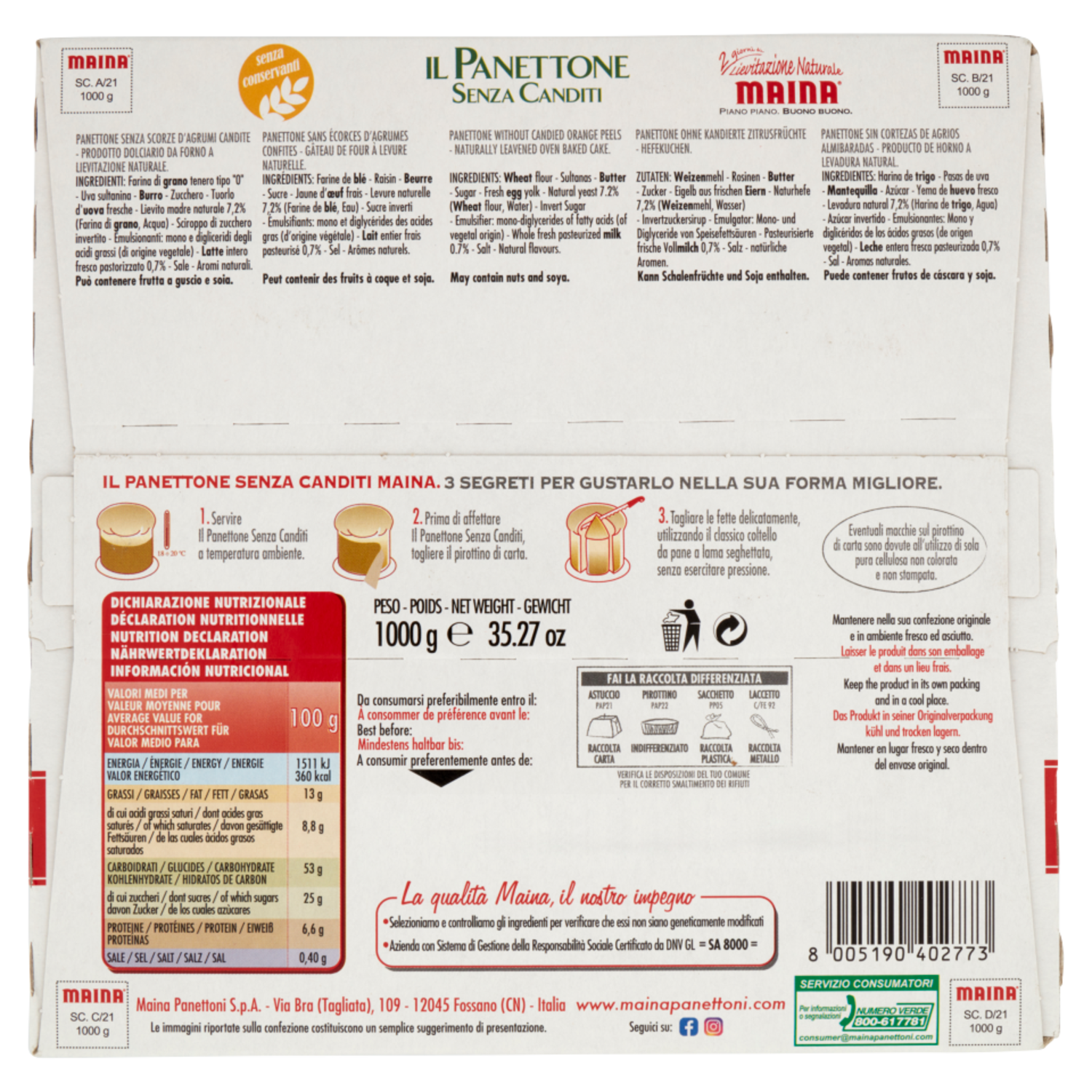 Maina il Panettone Senza Canditi 1000 g