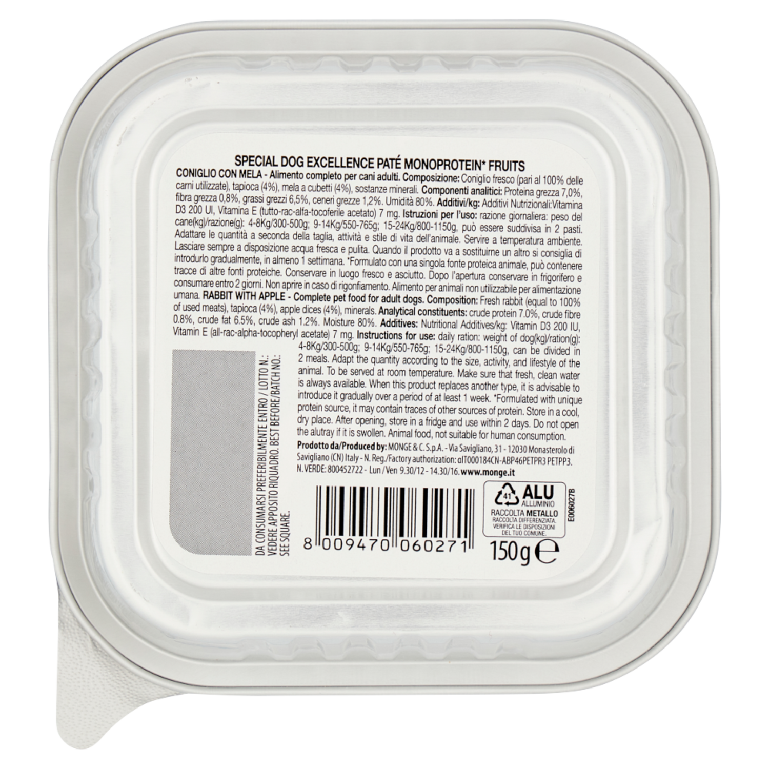 Special Dog Excellence Adult Patè Monoprotein* Coniglio con Mela 150 g