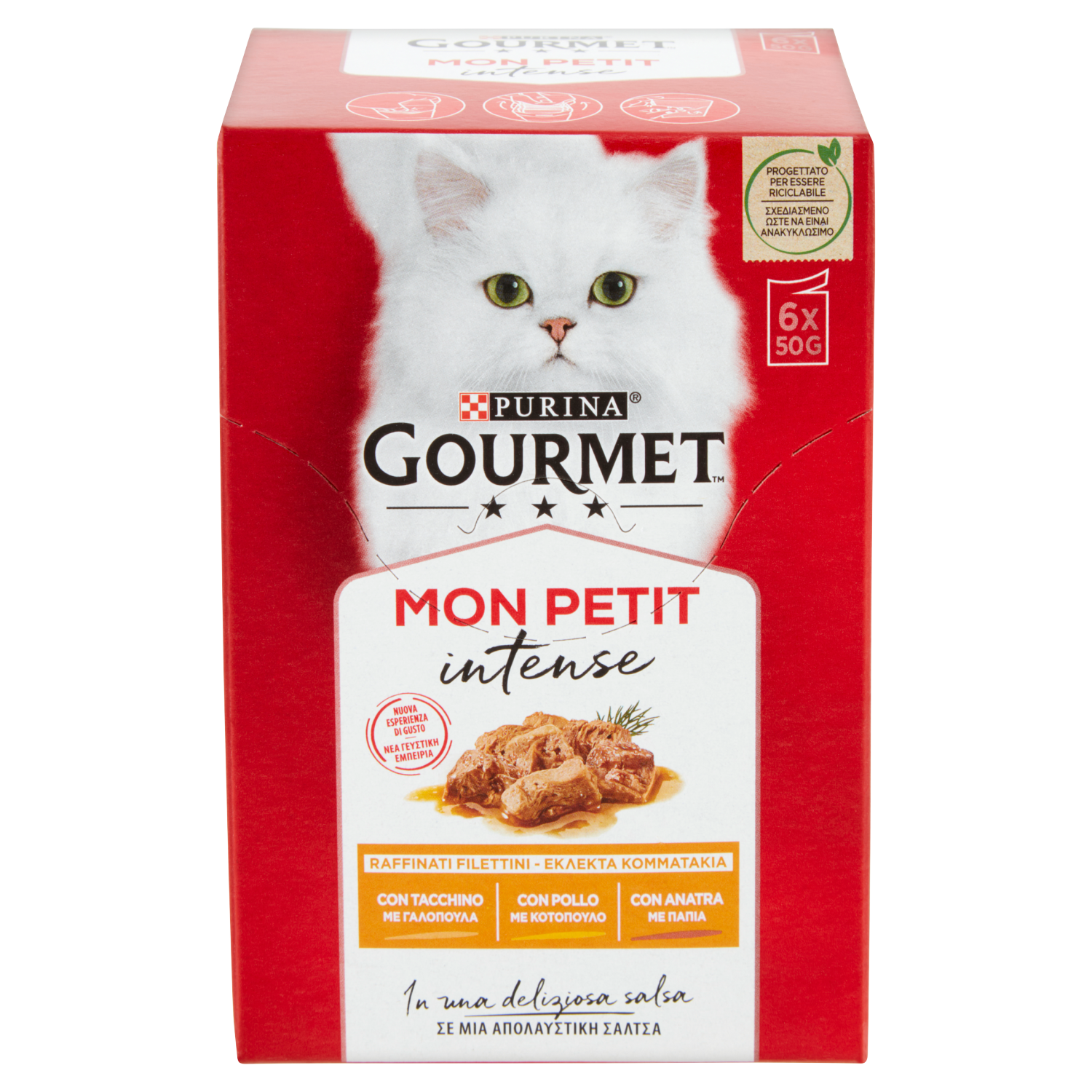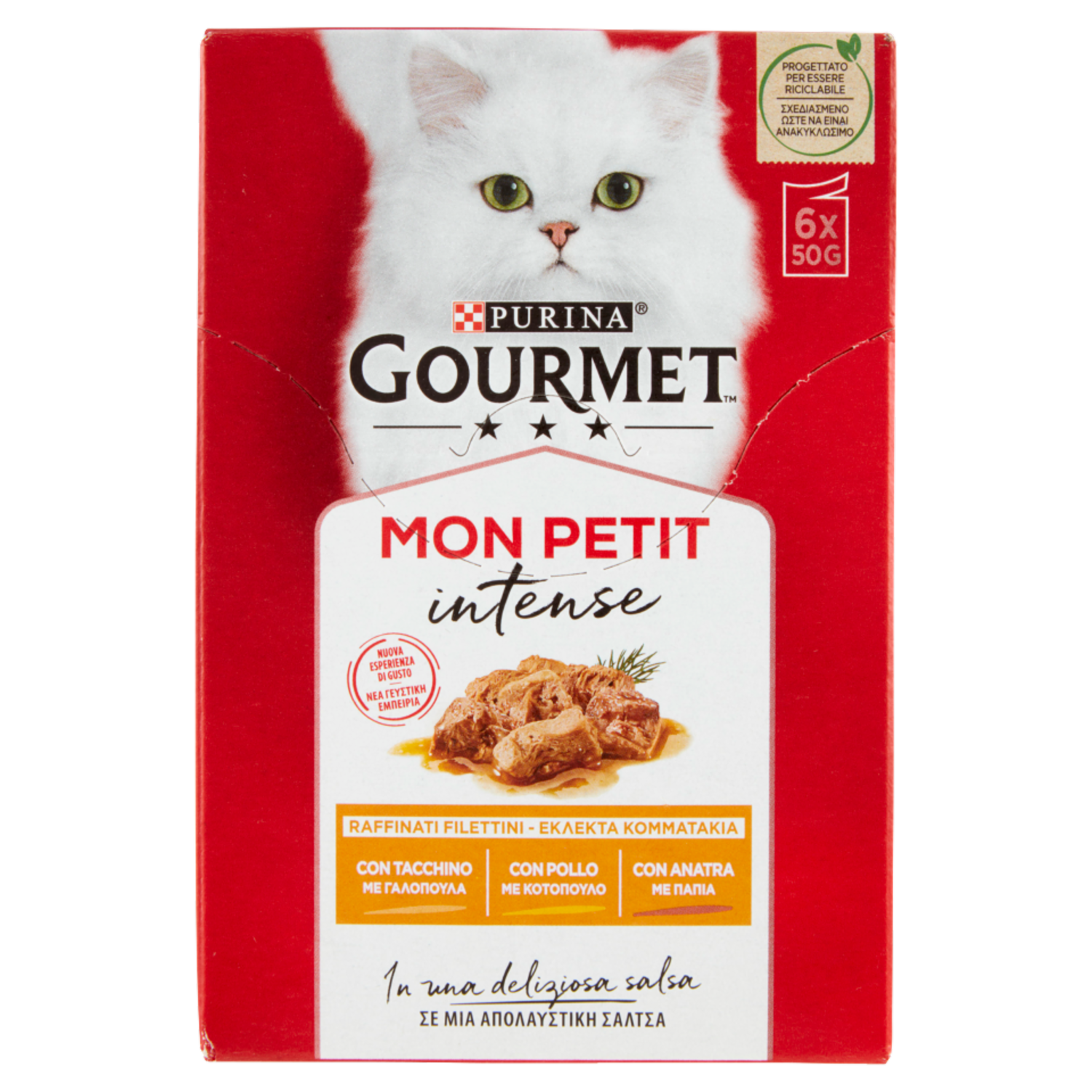 PURINA GOURMET Mon Petit Filettini Intense cotti in Salsa (Anatra / Pollo / Tacchino) 6x50g