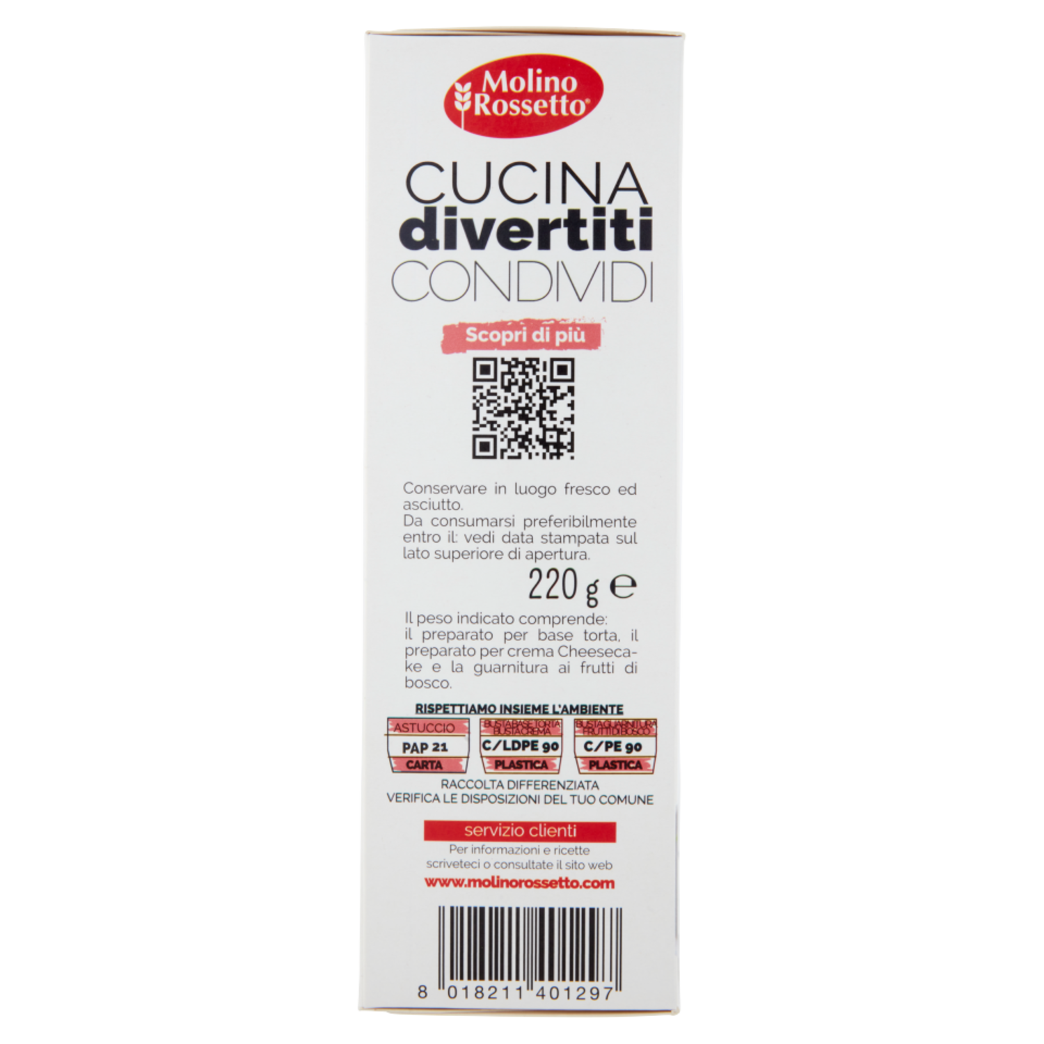 Molino Rossetto Preparato per Cheesecake Senza Cottura 220 g