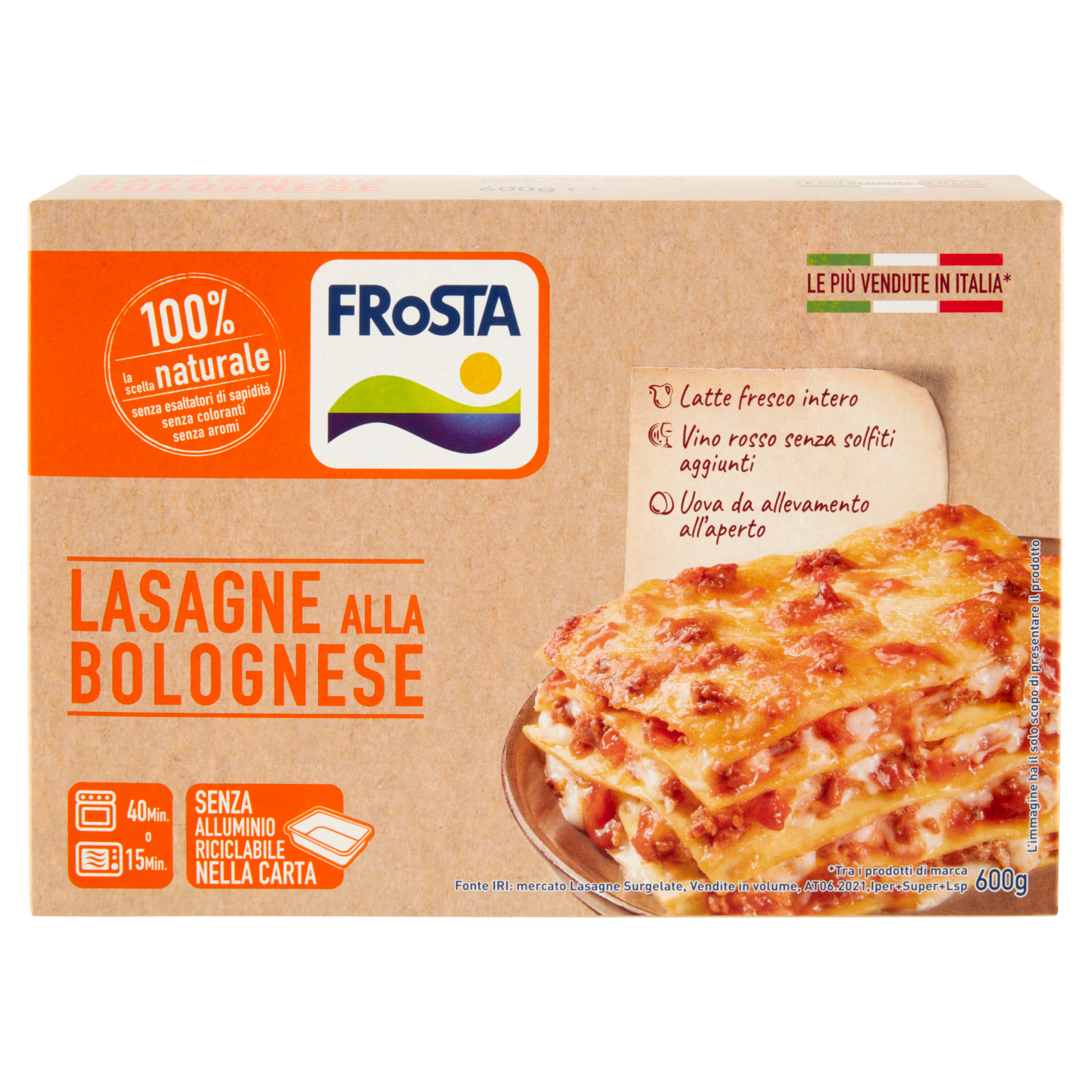 *Tra i prodotti di marca - Fonte IRI: mercato Lasagne Surgelate, Vendite in volume, AT06.2021,Iper+Super+Lsp
