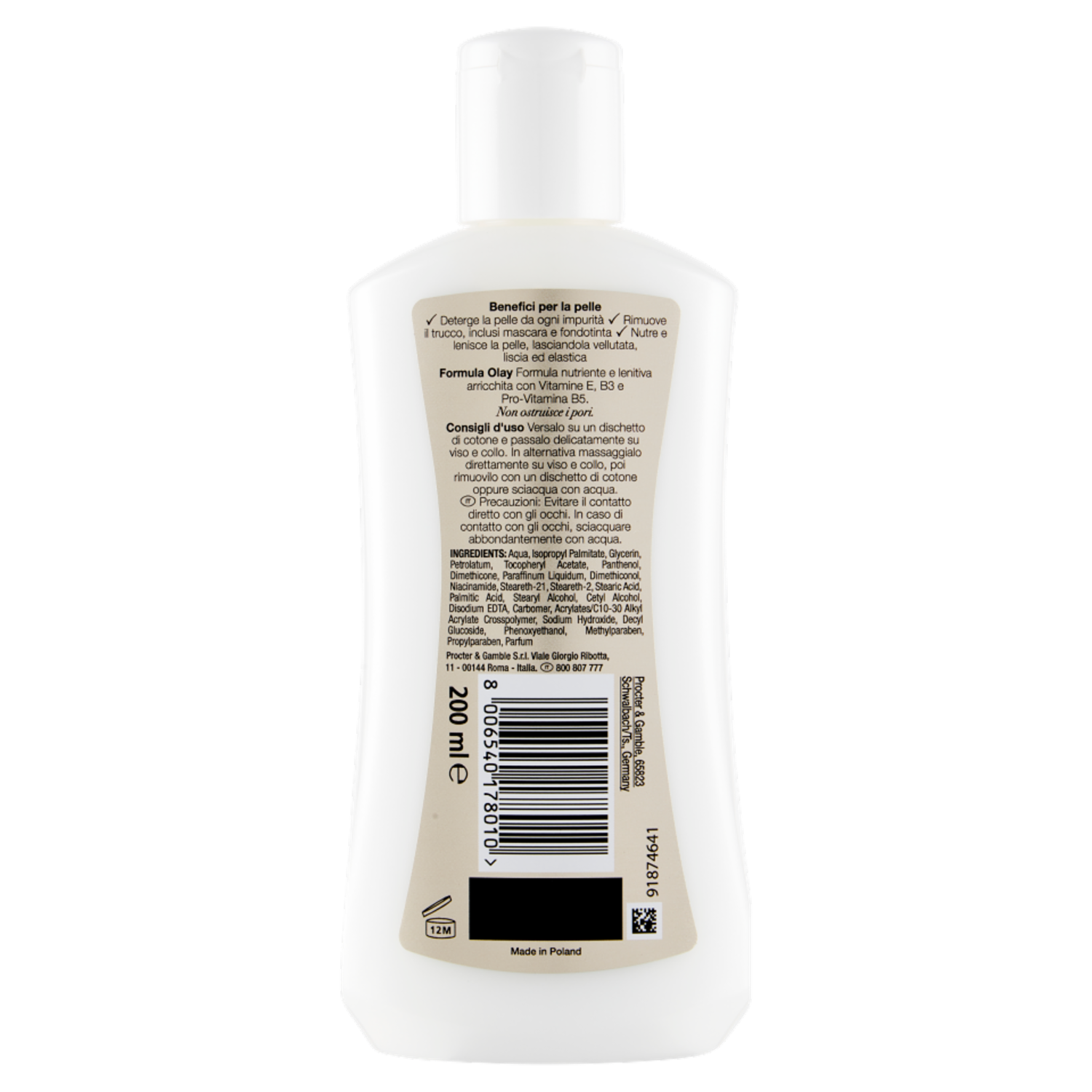 Olay Latte Detergente Struccante Viso Occhi Cleanse-Pelle Secca-Vitamine E,B3, Provitamina B5-200 ml