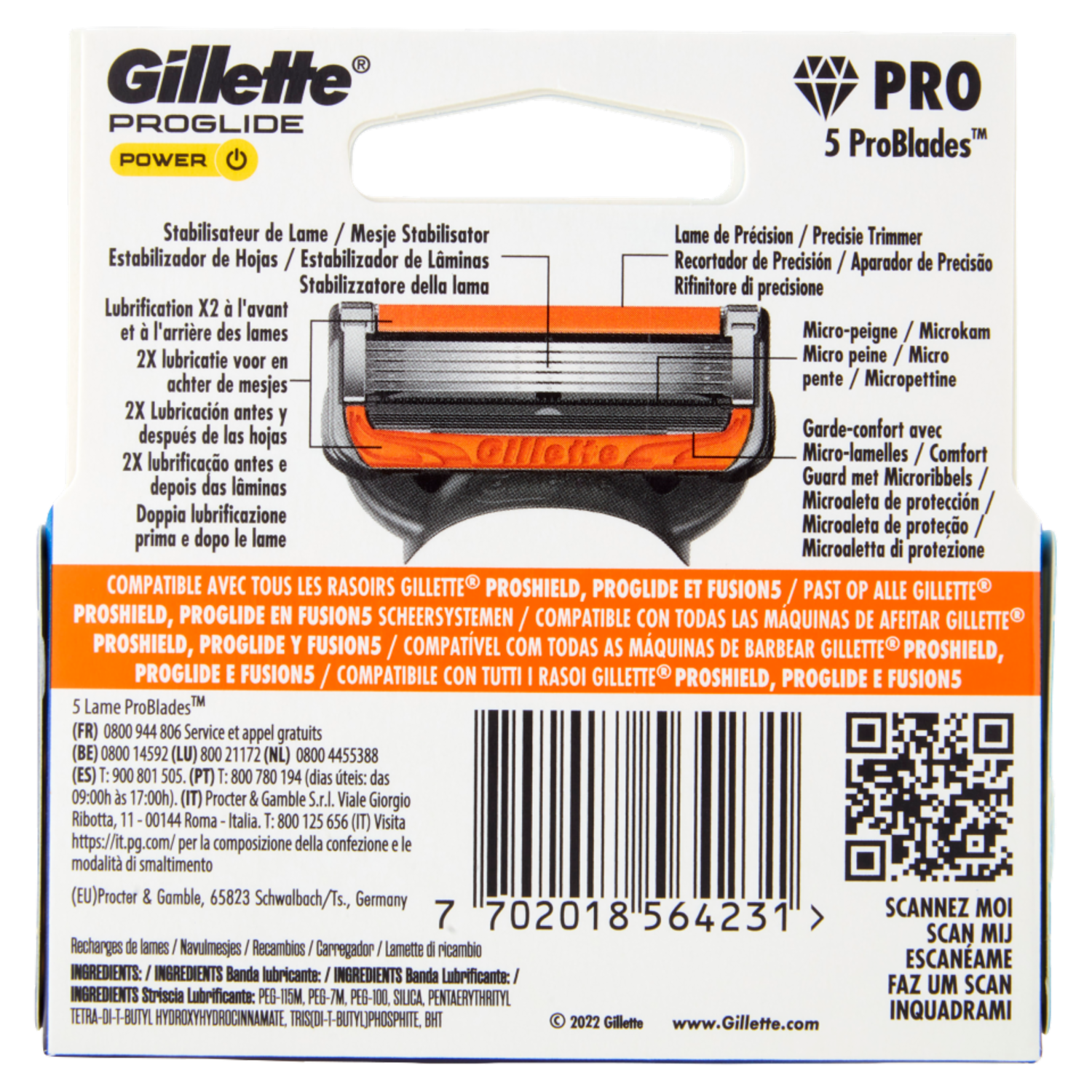 Gillette Proglide Power Lamette di ricambio per Rasoio da Uomo, 4 Ricariche