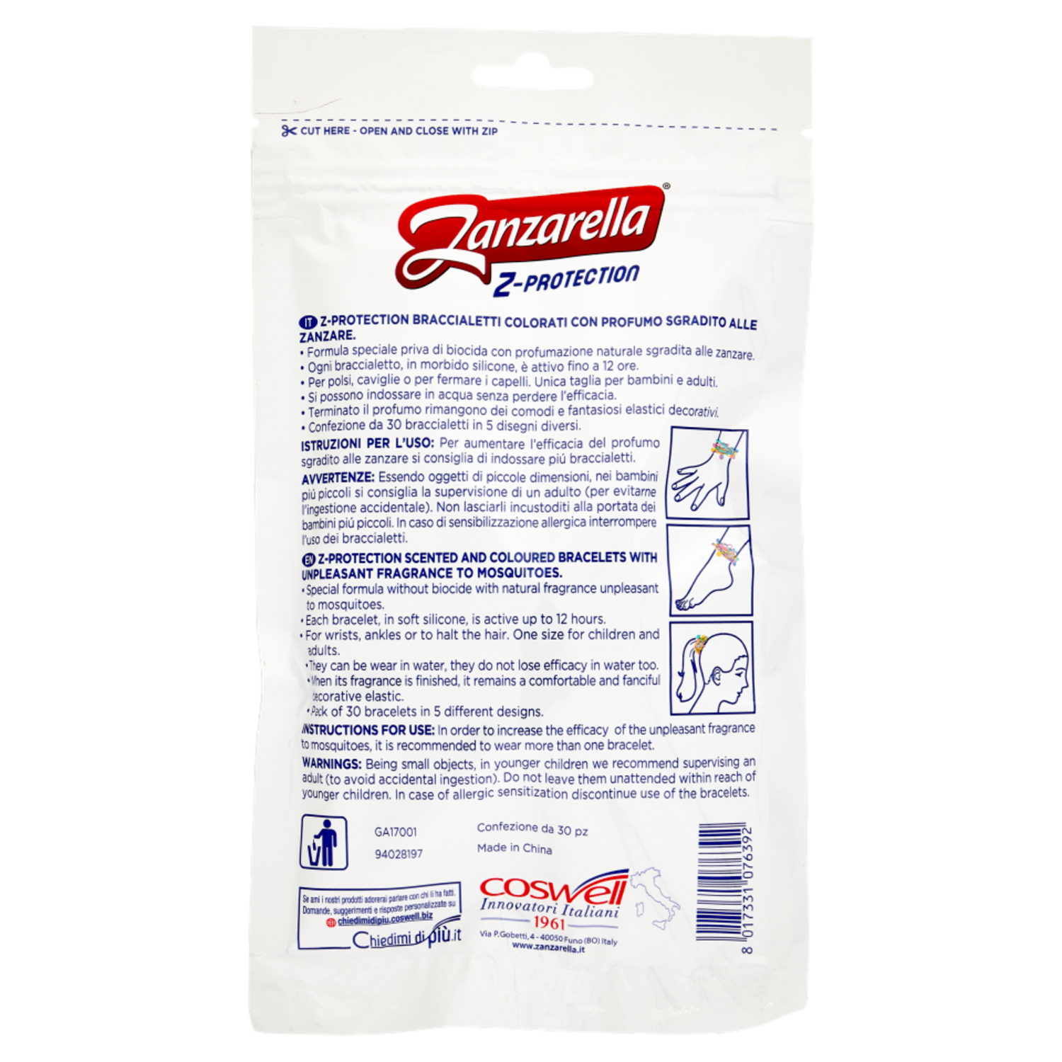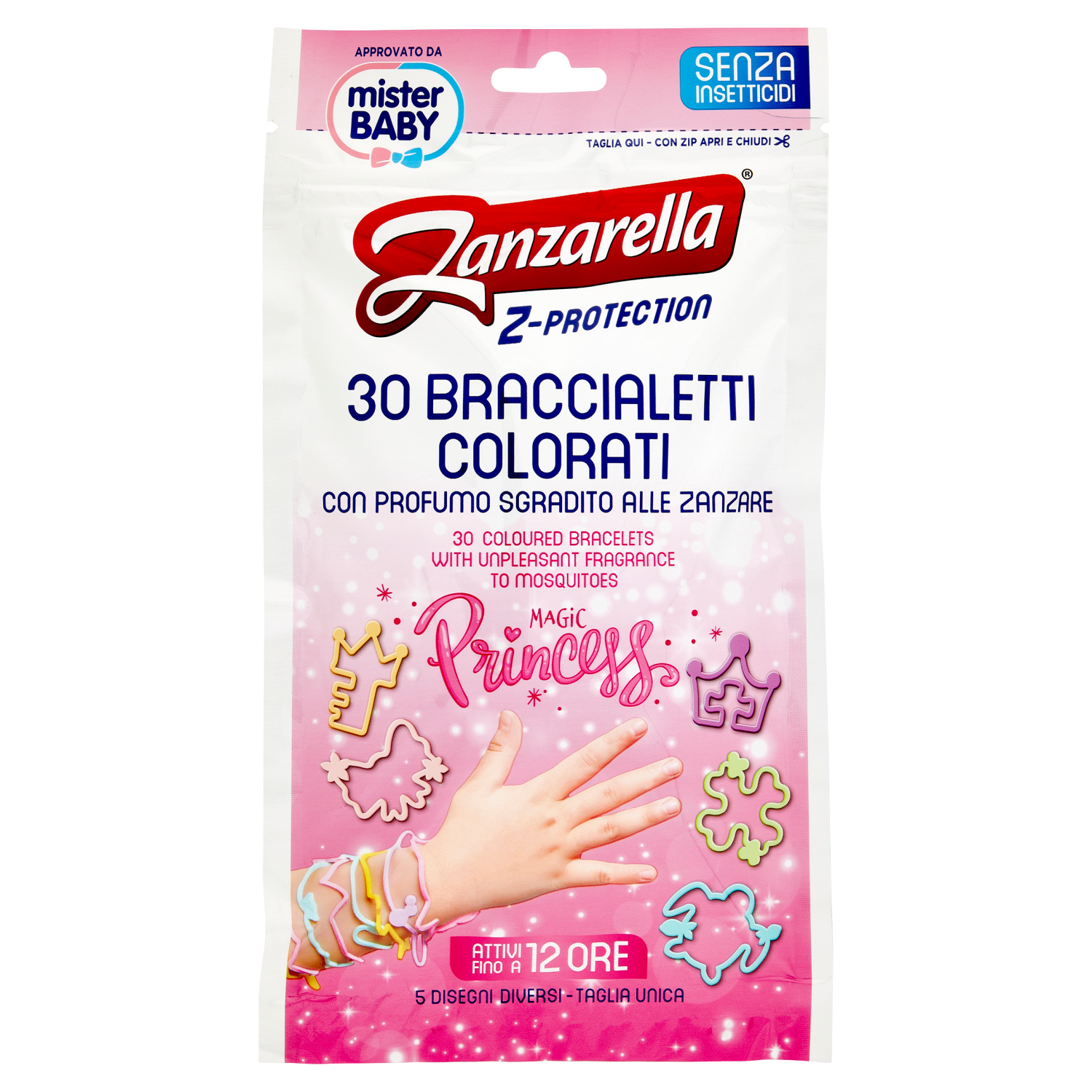 Zanzarella Z-Protection Braccialetti Colorati con Profumo Sgradito alle Zanzare Magic Princess 30 pz