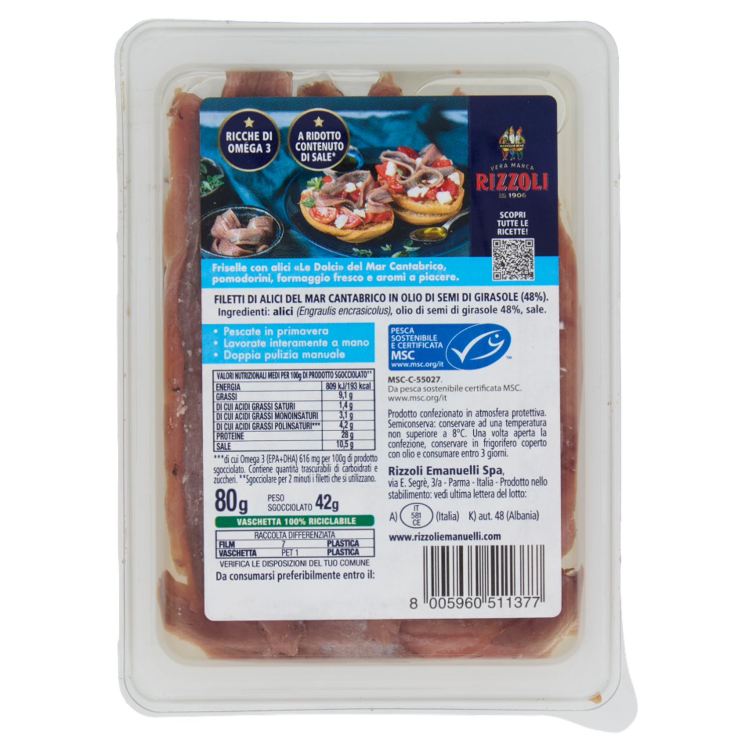 Rizzoli le Dolci del Mar Cantabrico Filetti di Alici a Bassa Salatura in Olio Bio 80 g