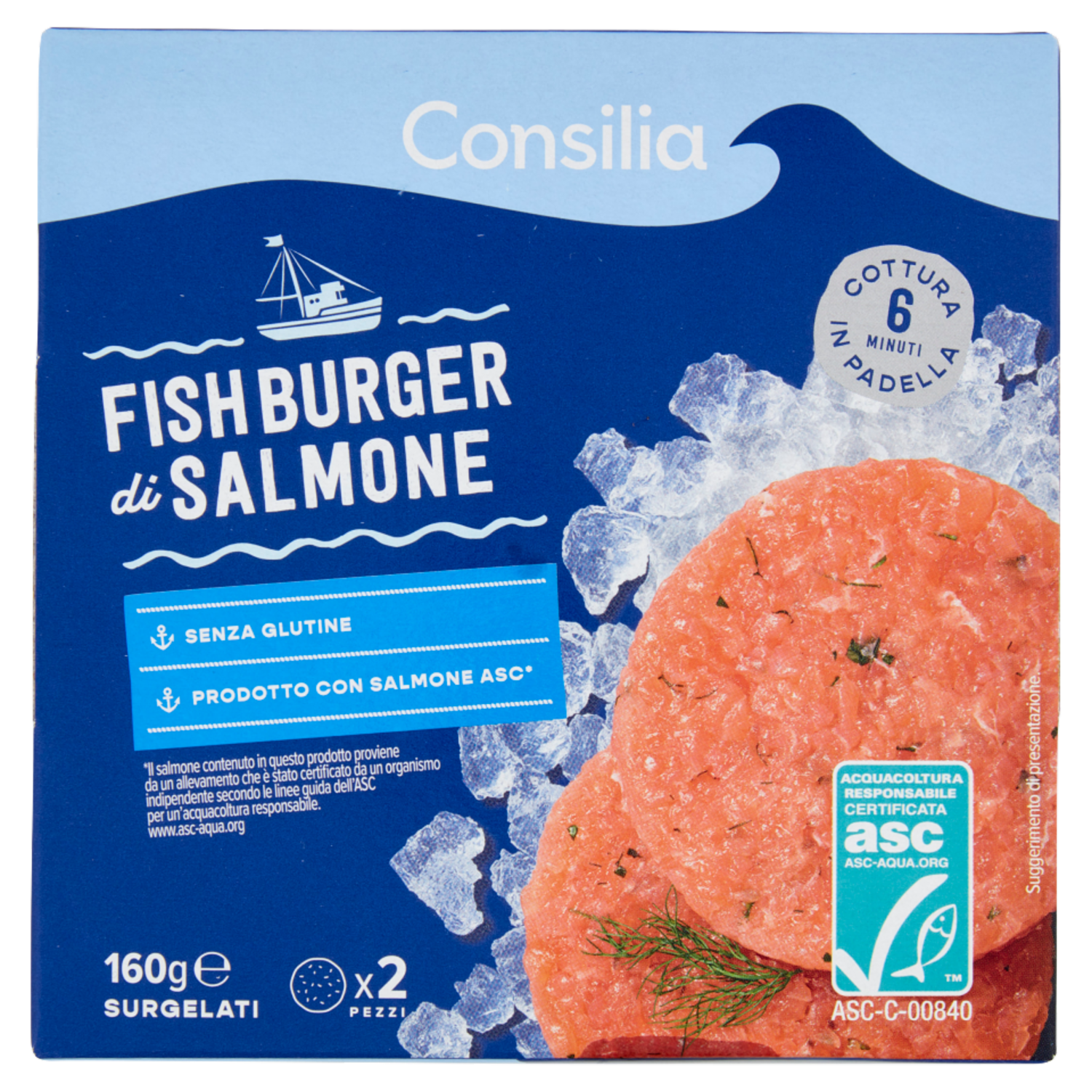 Consilia Fish Burger di Salmone Surgelato 2x80 g