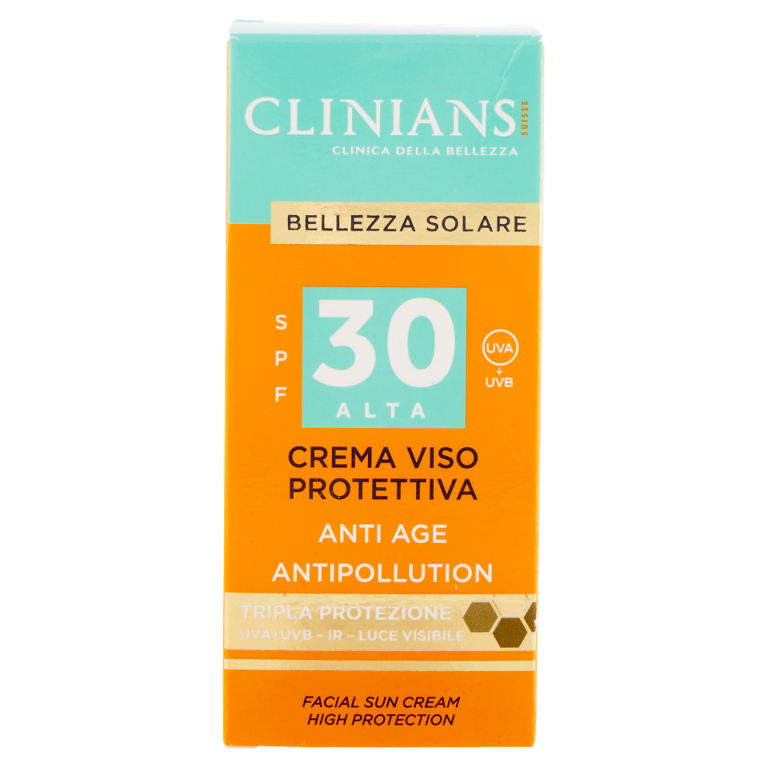 Clinians Bellezza Solare Crema Viso Protettiva Anti Age Antipollution SPF 30 Alta UVA + UVB 75 mL