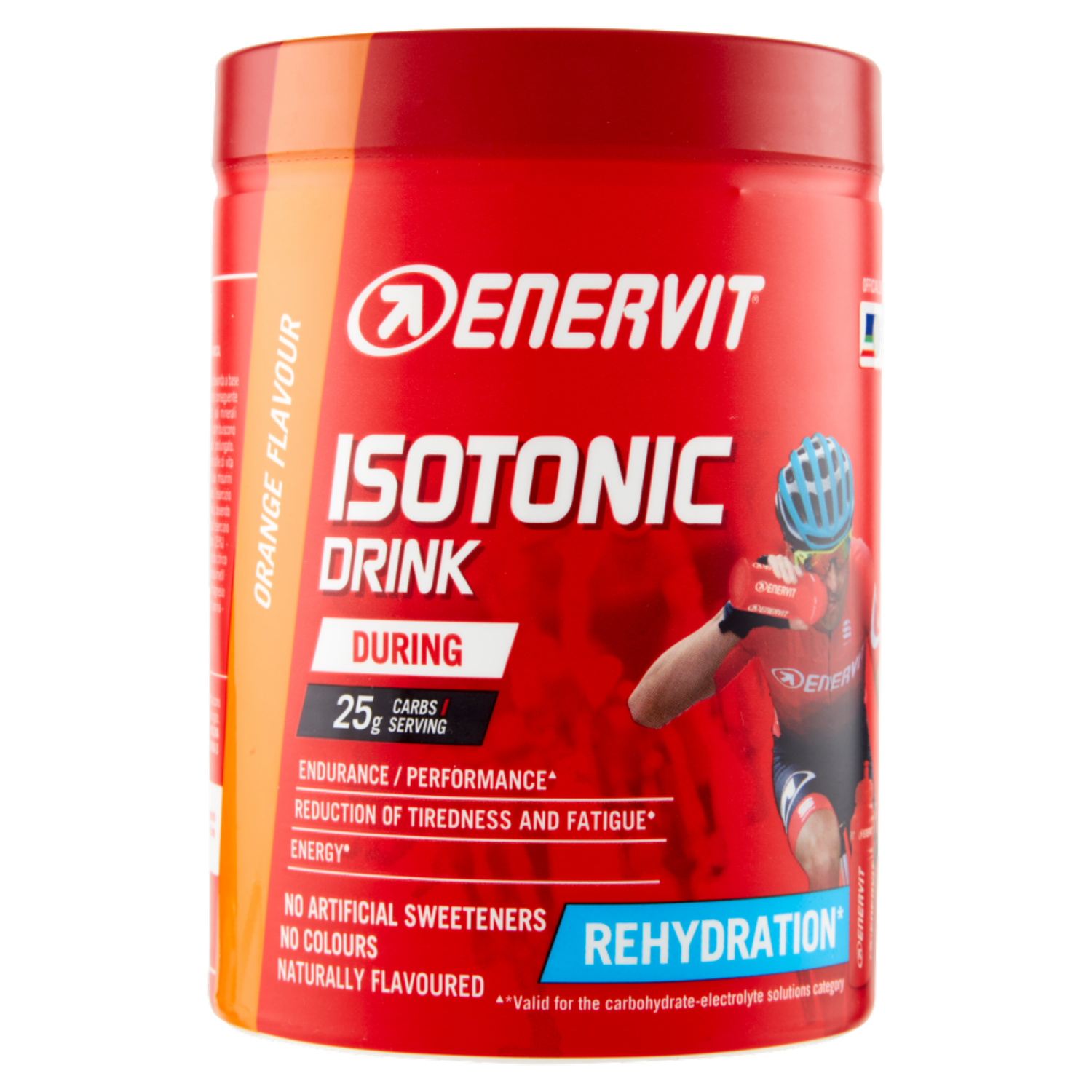 Isotonic drink A base di carboidrati e sali minerali. Prodotto per sportivi. Gusto arancia. Enervit Isotonic Drink è un granulato istantaneo per la preparazione di una bevanda a base di carboidrati e sali minerali da utilizzarsi in caso di sudorazione abbondante conseguente ad una intensa attività muscolare e sportiva. *Le bevande di carboidrati - sali minerali aumentano l'assorbimento di acqua durante l'esercizio fisico e contribuiscono al mantenimento di prestazioni di resistenza durante l'esercizio fisico prolungato. Il prodotto va utilizzato nell'ambito di una dieta variata ed equilibrata ed uno stile di vita sano. *Valid for the carbohydrate-electrolyte solutions category