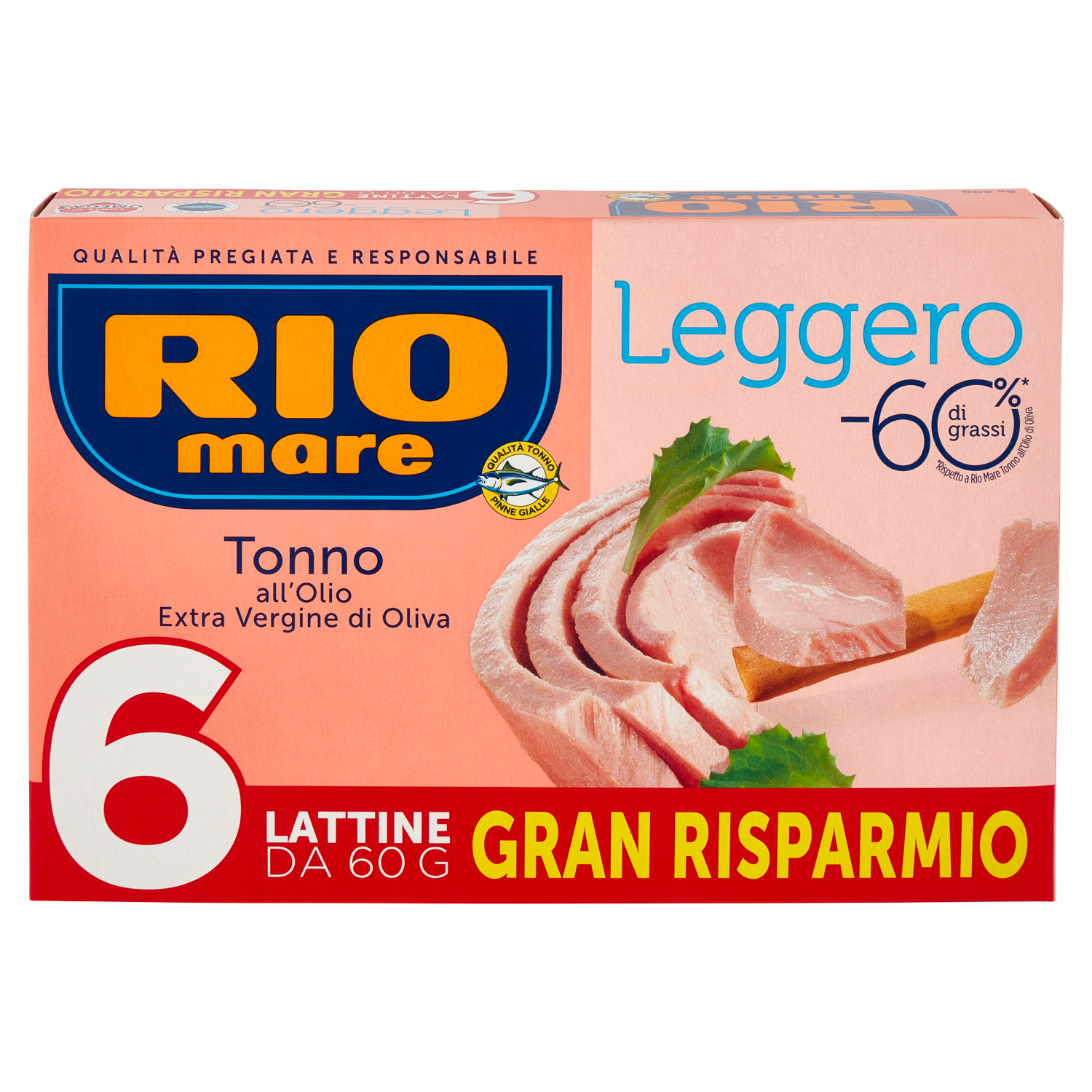 Rio mare Tonno all'Olio Extra Vergine di Oliva Leggero 6 x 60 g