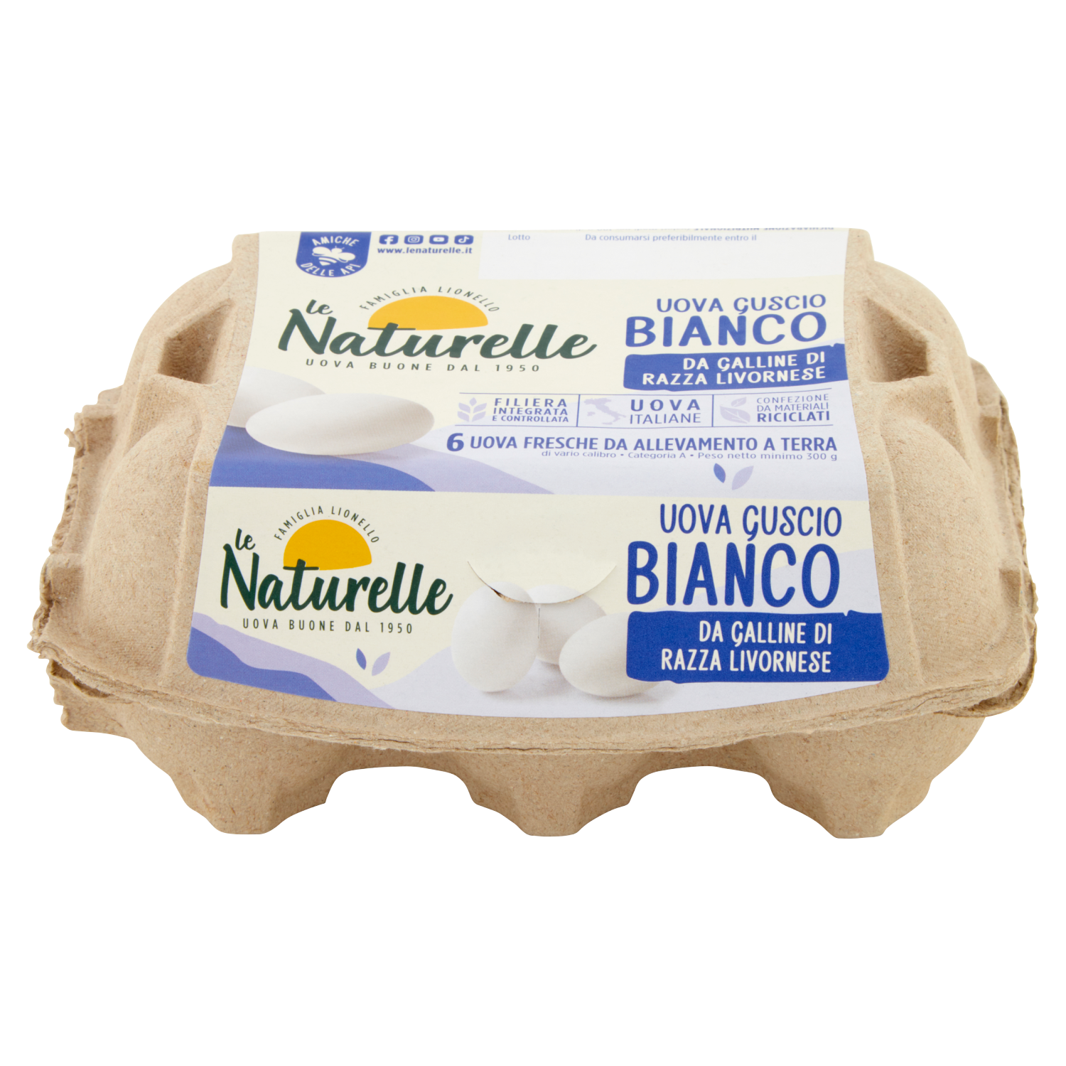 le Naturelle Uova Guscio Bianco 6 Uova Fresche da Allevamento a Terra 300 g