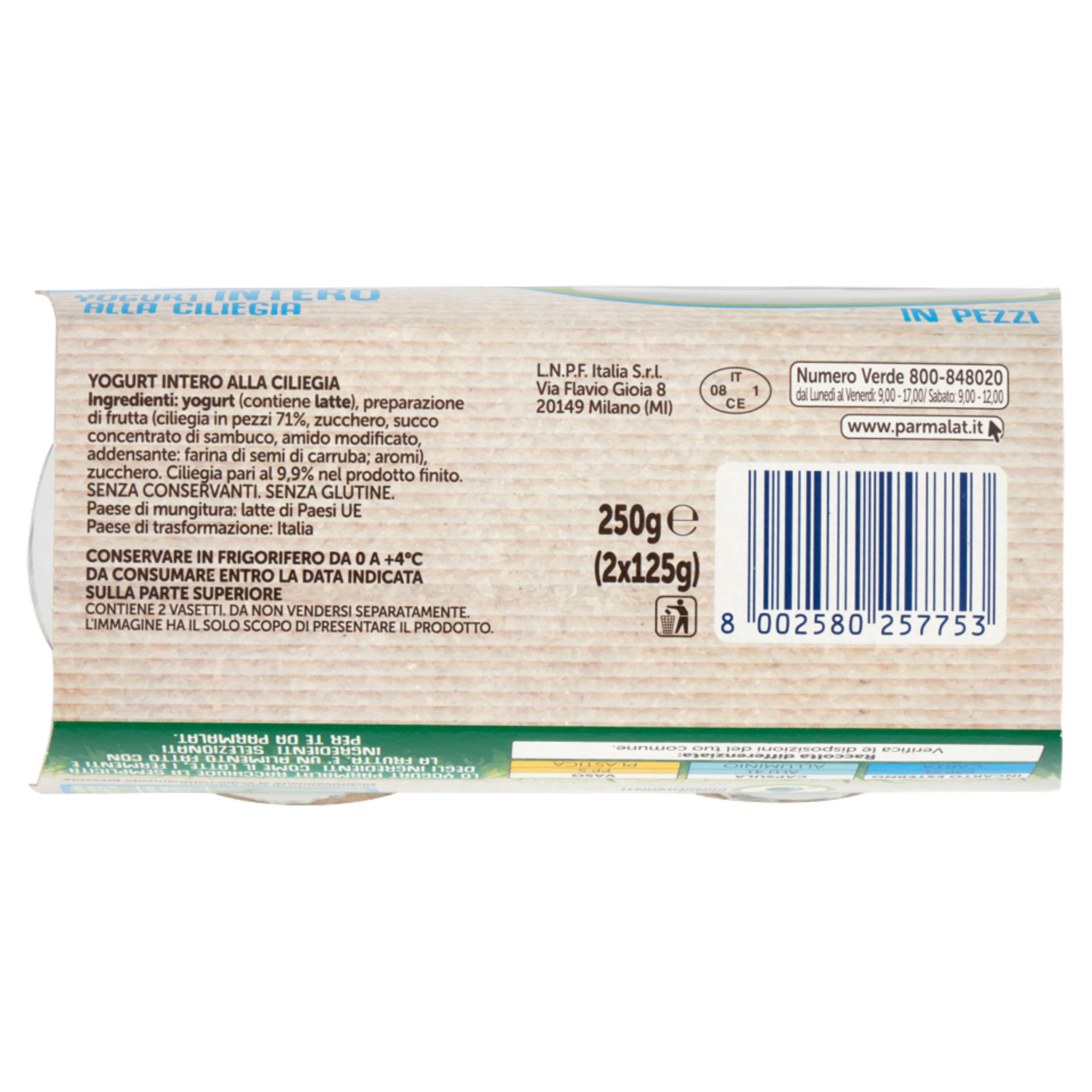 parmalat Yogurt Intero alla Ciliegia in Pezzi 2 x 125 g