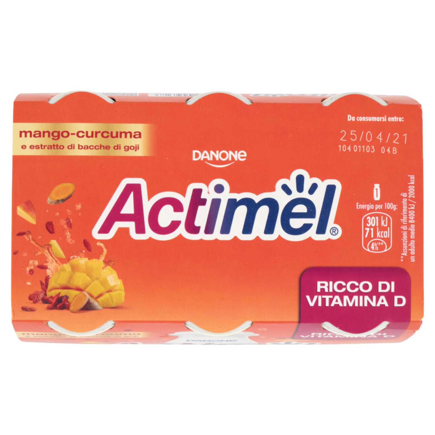 Actimel mango-curcuma e estratto di bacche di goji 6 x 100 g